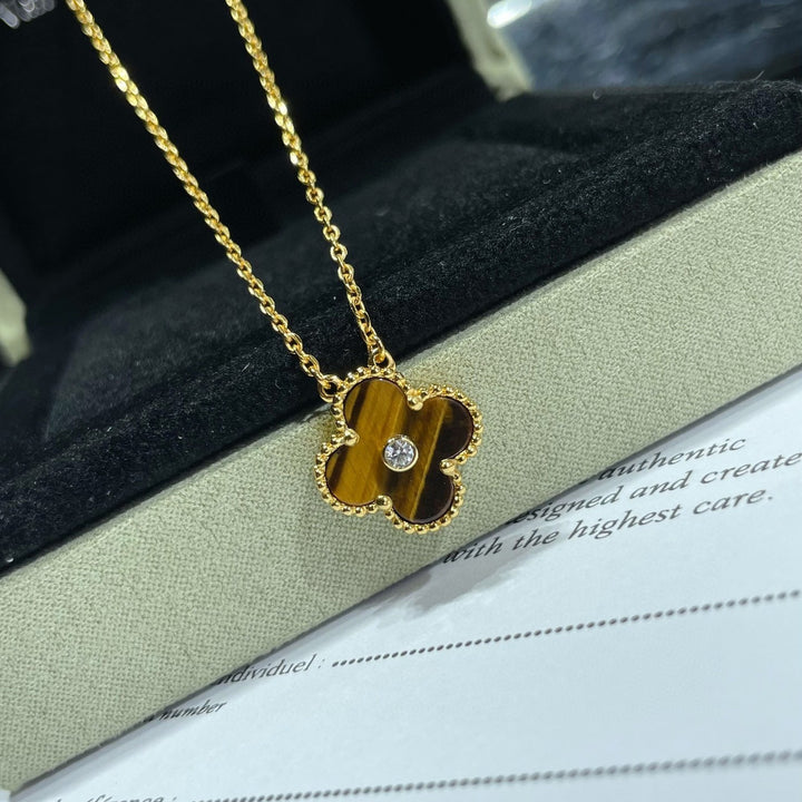 ˇTrend JewelryˇCLOVER 15MM DIAMOND AND YELLOW TIGER'S EYE AGATE necklace